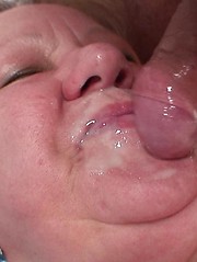 Chubby mature blonde gets a big load of jizz spilled on her face and tummy