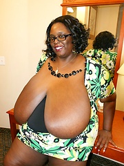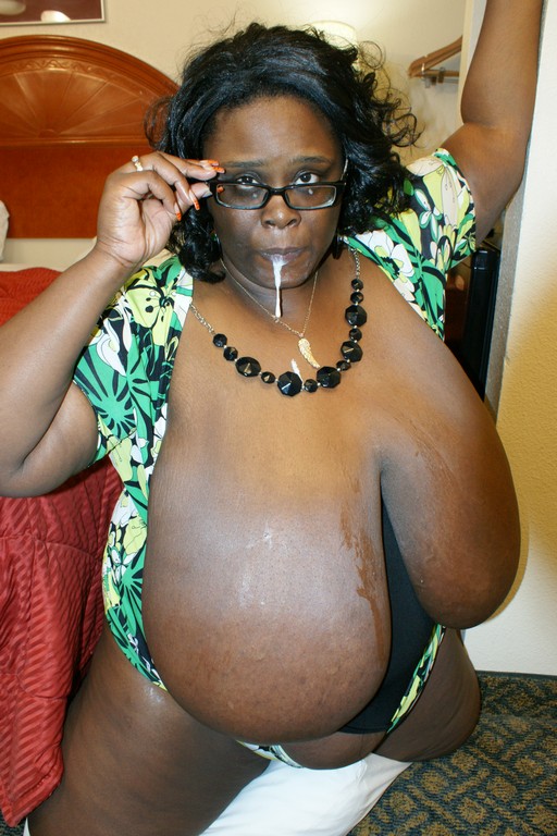 Extra large chocolate juggs drag on the floor as this lady bends over to get dicked!
